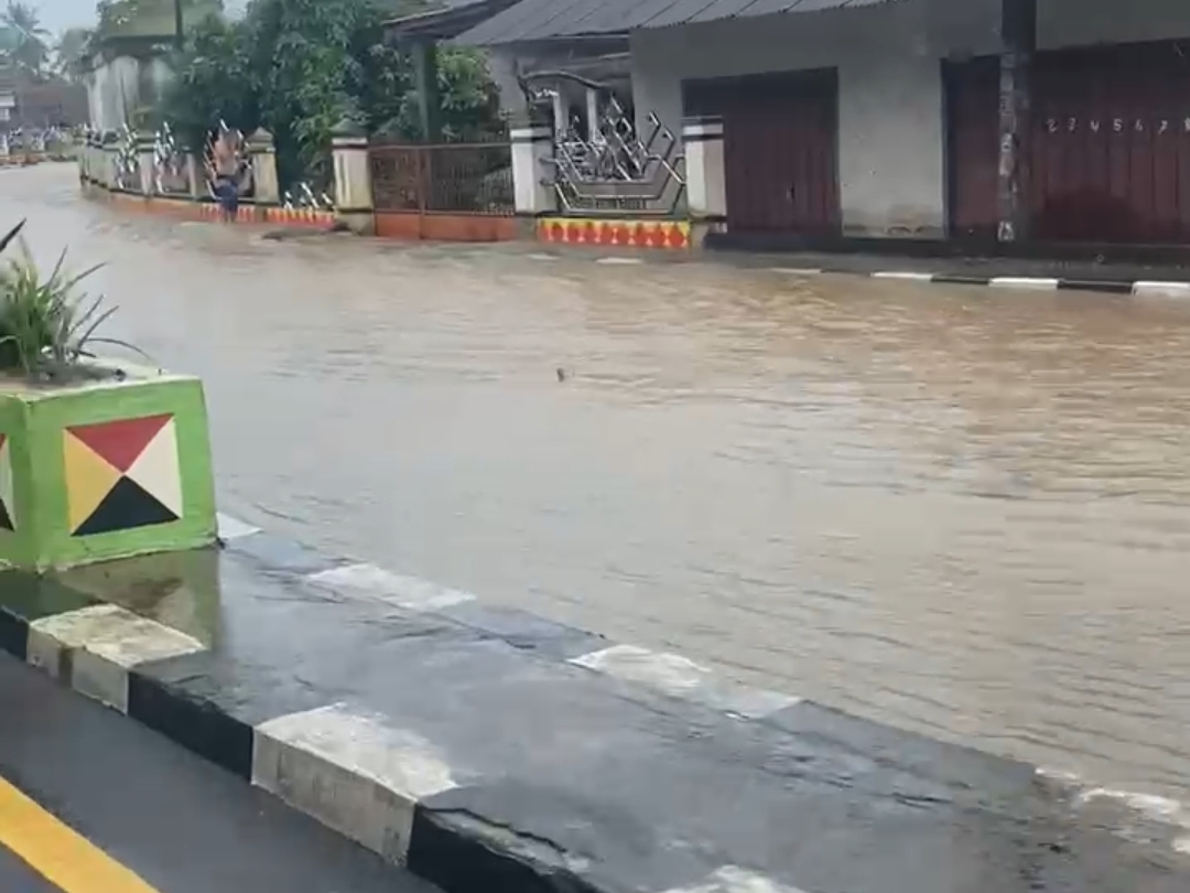 Hujan Deras Sebabkan Genangan Air di Jalan Ir. Hi. Juanda, Kota Agung